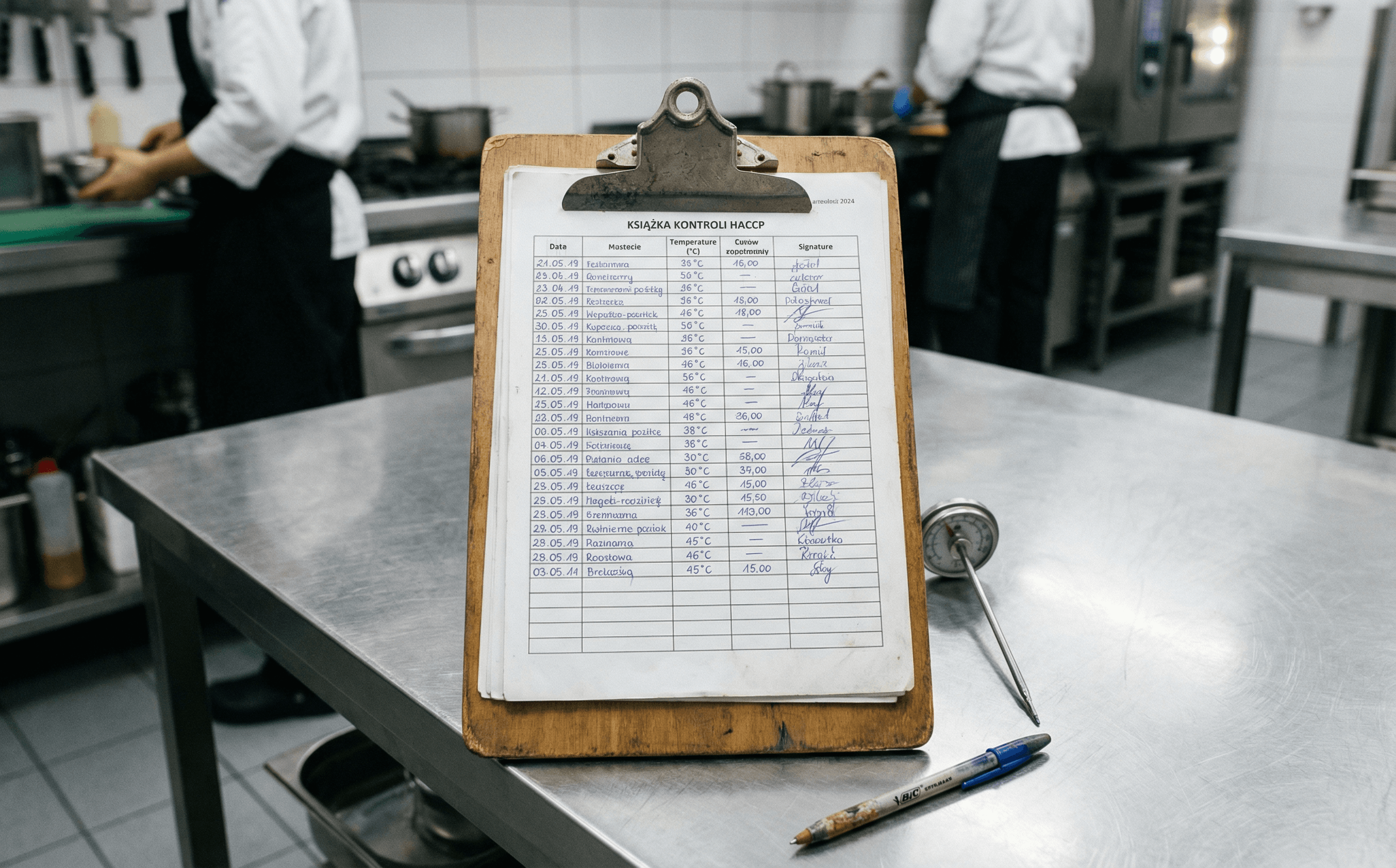 Zasady prowadzenia rejestrów temperatury, mycia i dezynfekcji oraz innych wymaganych zapisów w codziennej praktyce.
